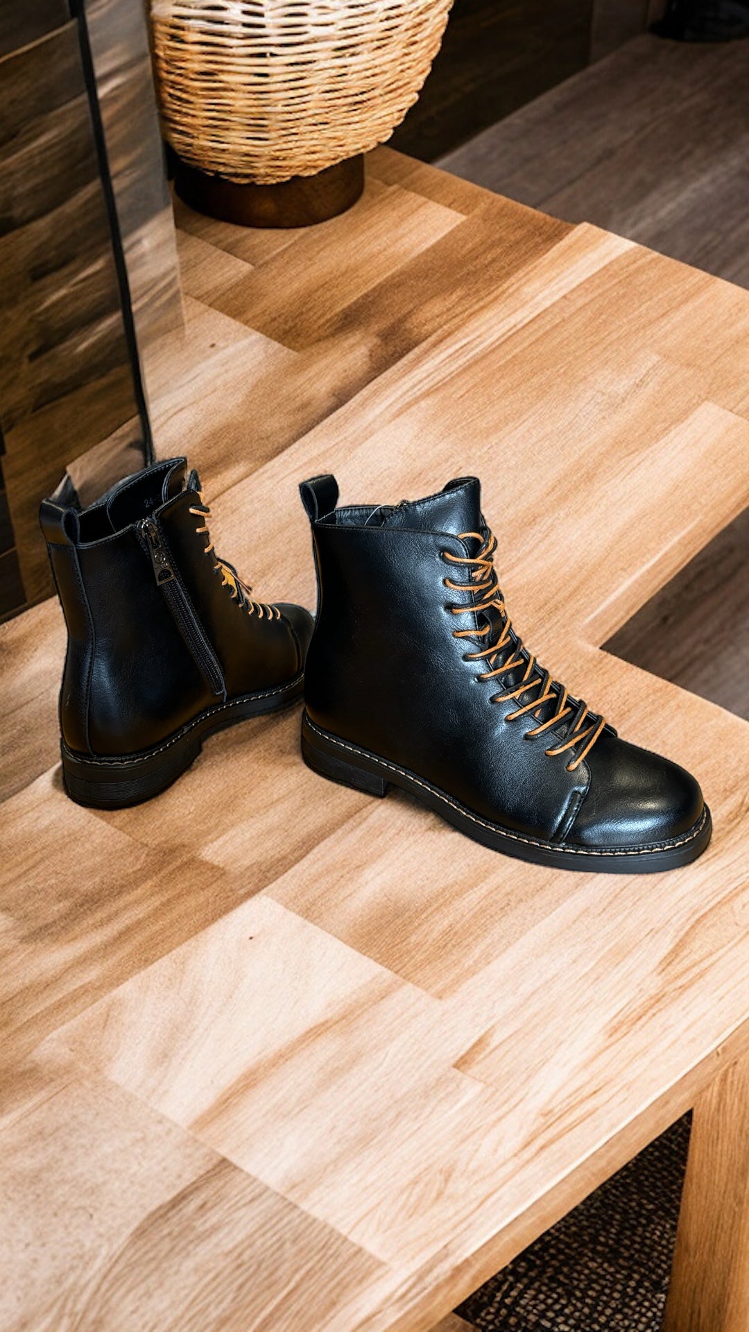 Botki wykonane z wysokiej jakości miękkiej ekoskóry łączą w sobie elegancję i komfort. Ich minimalistyczny design sprawia, że są uniwersalne i pasują do różnych stylizacji – zarówno codziennych, jak i bardziej formalnych. Płaska podeszwa zapewnia wygodę noszenia przez cały dzień, a jednocześnie dodaje lekkości sylwetce.