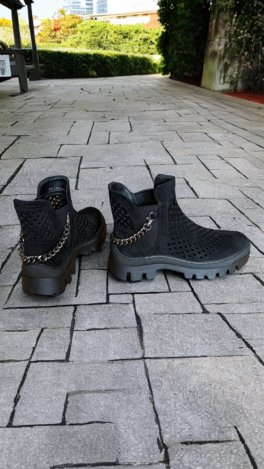 Te eleganckie botki ażurowe charakteryzują się delikatnym wzorem, który nadaje im lekkości i oryginalności. Wykonane z wysokiej jakości skóry ekologicznej, są zarówno trwałe, jak i przyjazne dla środowiska. Ozdobny łańcuszek z tyłu dodaje im niepowtarzalnego charakteru i sprawia, że stają się prawdziwą ozdobą każdej stylizacji. Idealne na wiosnę i lato, doskonale komponują się zarówno z sukienkami, jak i spodniami.