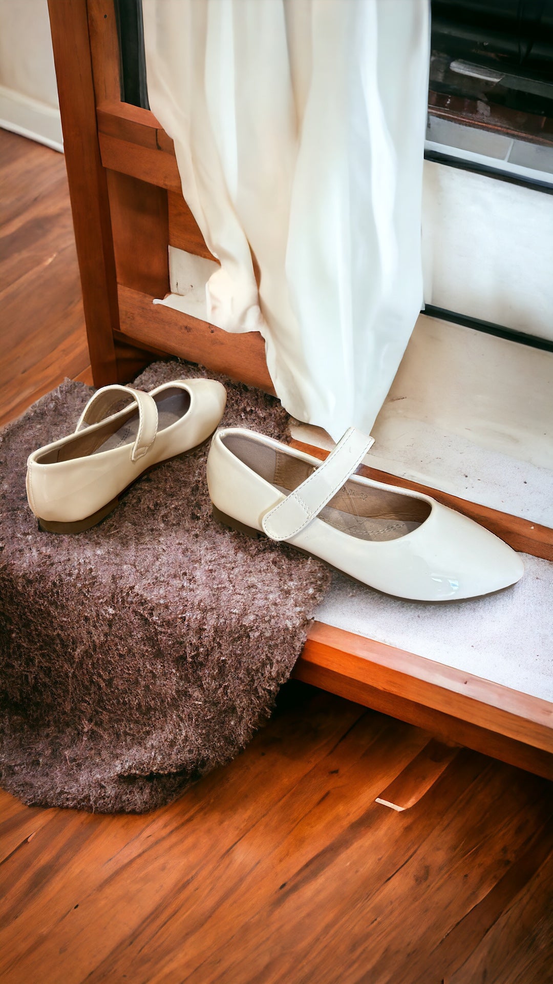Białe baleriny ze skórzaną wkładką zapinane na rzep to obuwie, które łączy w sobie elegancję i wygodę