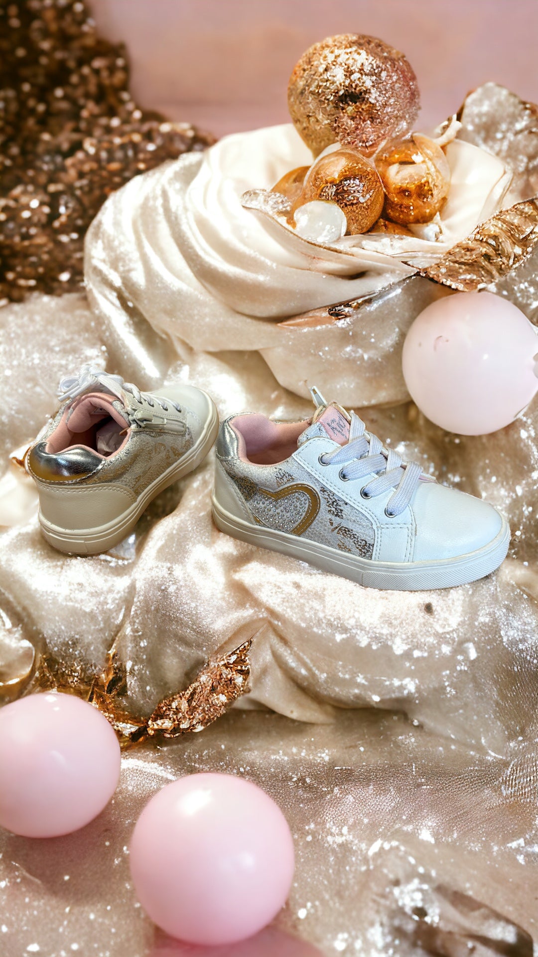 Te białe trampki są wykonane z wysokiej jakości materiałów, co zapewnia trwałość i wygodę noszenia. Brokatowe wstawki dodają im blasku i sprawiają, że są idealne na różne okazje – zarówno na co dzień, jak i na specjalne wyjścia. Zamek umieszczony z boku buta ułatwia zakładanie i zdejmowanie, co jest szczególnie praktyczne dla dzieci. Elastyczne sznurówki zapewniają idealne dopasowanie do stopy, co zwiększa komfort podczas użytkowania.