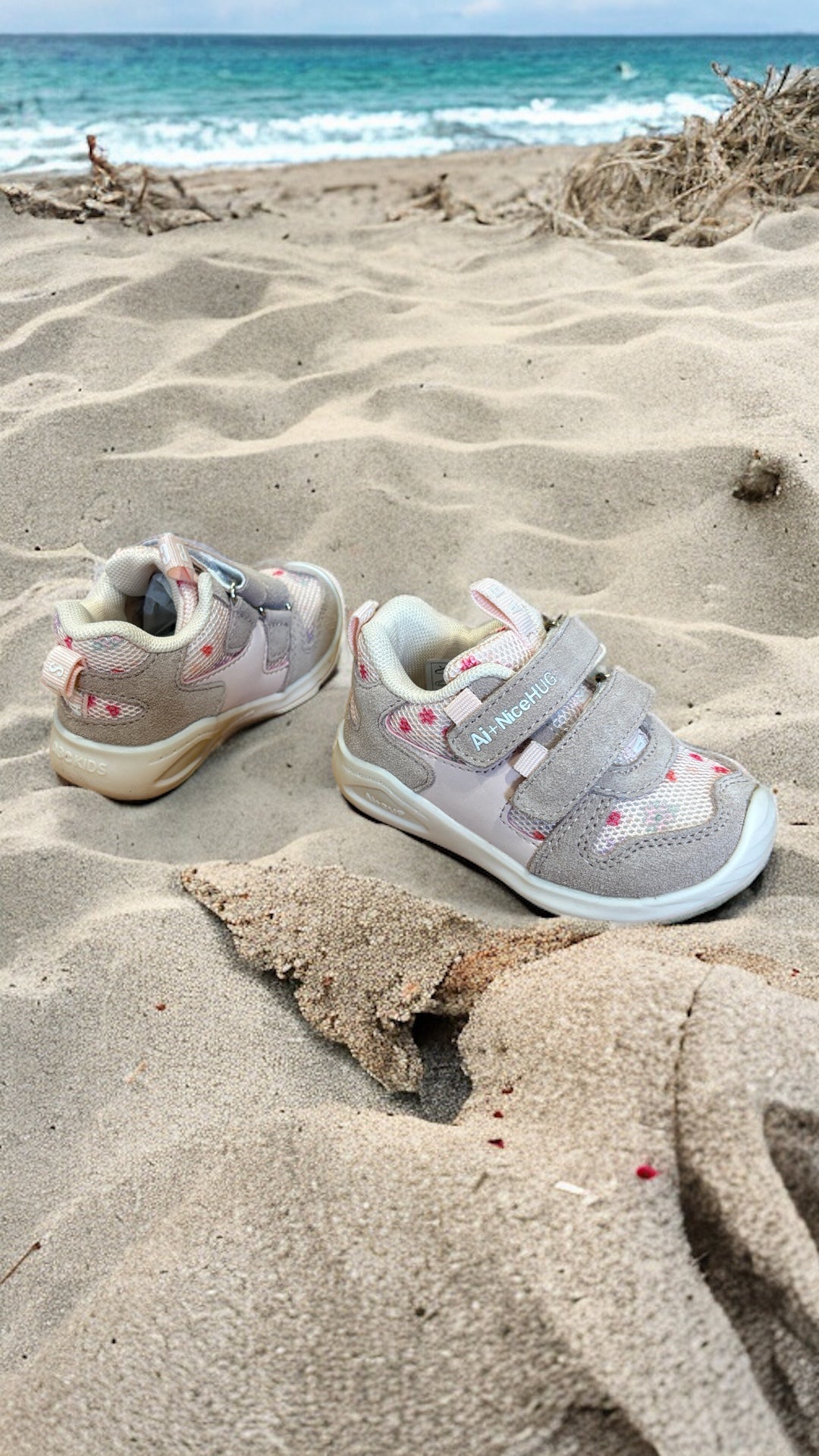 Wyjątkowo lekkie trzewiki dla najmłodszych od ABCKIDS. Zapewnią wygodę i ochronę stóp dziecka podczas zabawy i codziennych aktywności. Wspierają naukę chodzenia oraz stabilizują dziecięcą stopę. Posiadają wzmocniony i odpowiednio szeroki nosek zabezpieczający paluszki dziecka przed urazami. Podwyższona cholewka otula dziecięce kostki. Odpowiednio usztywniony zapiętek oraz ukształtowanie części piętowej utrzymują stopę we właściwym położeniu. Bezszwowy kołnierz wyściełany pianką zapewnia wsparcie i wygodę. Elementy obuwia wykonane ze skóry naturalnej. Elementy z tekstylnej siateczki dbają o prawidłową cyrkulację powietrza wewnątrz obuwia. Paski zapinające z taśmą rzepową umożliwiają łatwe dopasowanie obuwia do stopy dziecka. Wygodny, innowacyjny uchwyt ułatwia rozpinanie bucików. Spód z lekkiej i elastycznej pianki EVA zapewnia dynamiczną amortyzację i tłumienie wstrząsów. Odpowiednia konstrukcja warunkuje zginanie spodu w prawidłowy sposób. W części piętowej spód otula cholewkę wspomagając stabilizację stopy. Spód ochrania również paluszki dziecka przed urazami. Anatomiczna wyściółka z profilowanej pianki 3D o strukturze plastra miodu pokryta skórą naturalną, zwiększa komfort użytkowania.
