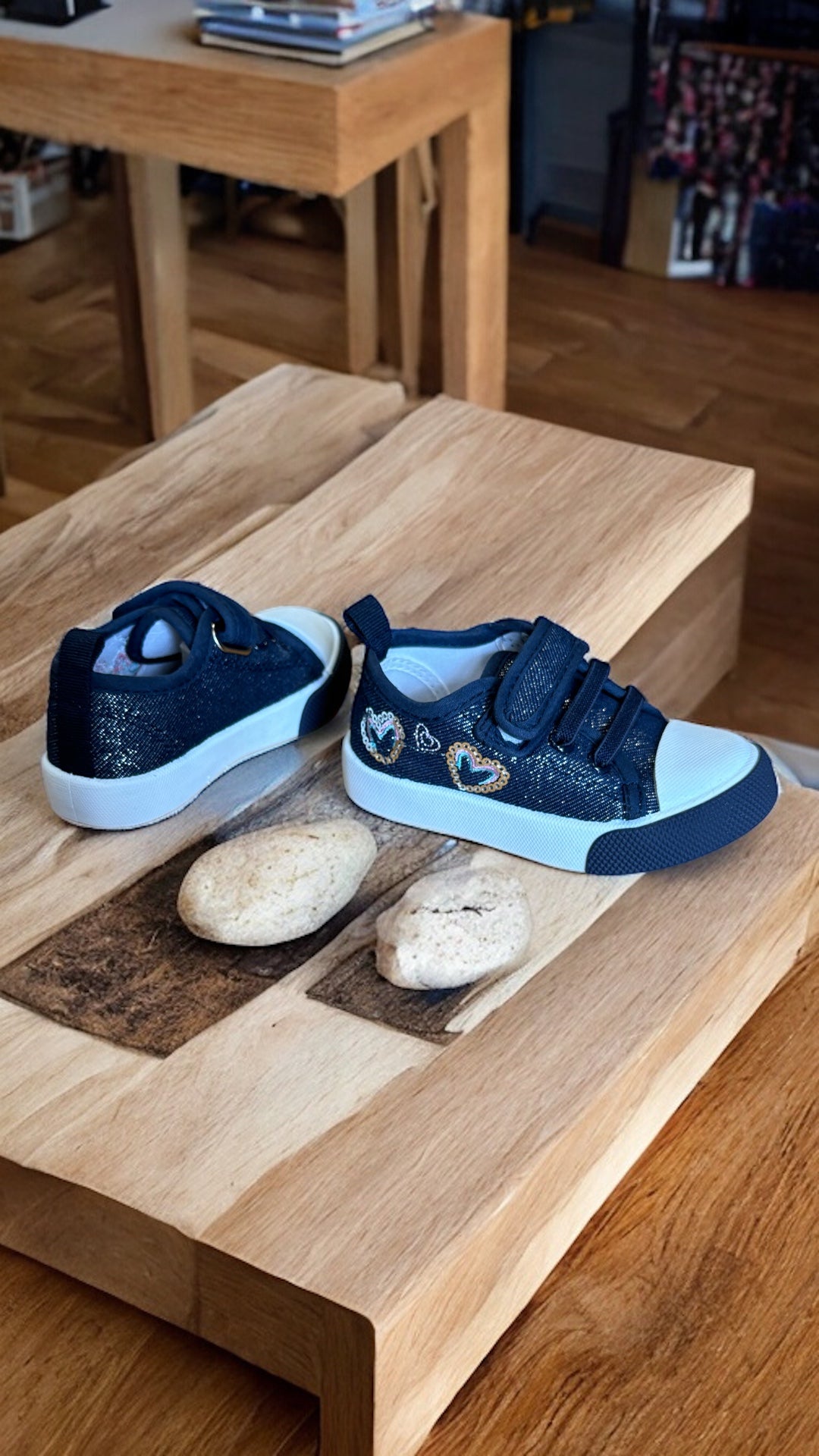 Granatowe trampki z połyskiem to świetny wybór dla dziewczynek, które cenią sobie styl i wygodę. granatowy kolor sprawia, że pasują do wielu różnych stylizacji. Zapięcie na rzepkę oraz regulowana gumeczka to praktyczne rozwiązania, które ułatwiają użytkowanie. Dzieci mogą swobodnie biegać i bawić się, nie martwiąc się o to, że buty się rozwiążą. Ogólnie rzecz biorąc, są to bardzo funkcjonalne i estetyczne trampki, które z pewnością przypadną do gustu młodym użytkowniczkom.