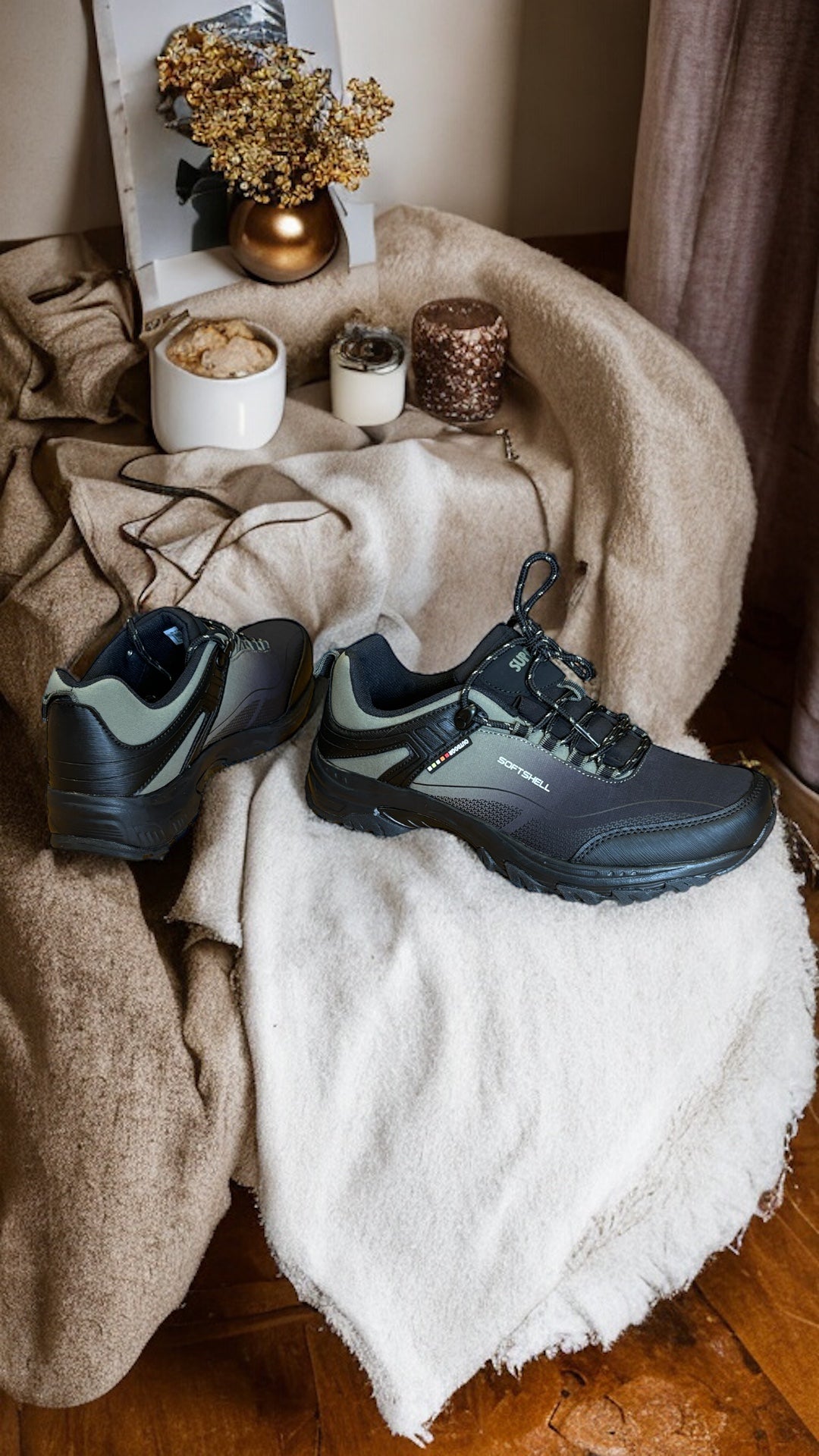 Stylowy Design: Połączenie czerni z khaki sprawia, że buty są uniwersalne i łatwo dopasowują się do różnych stylizacji, zarówno sportowych, jak i casualowych.