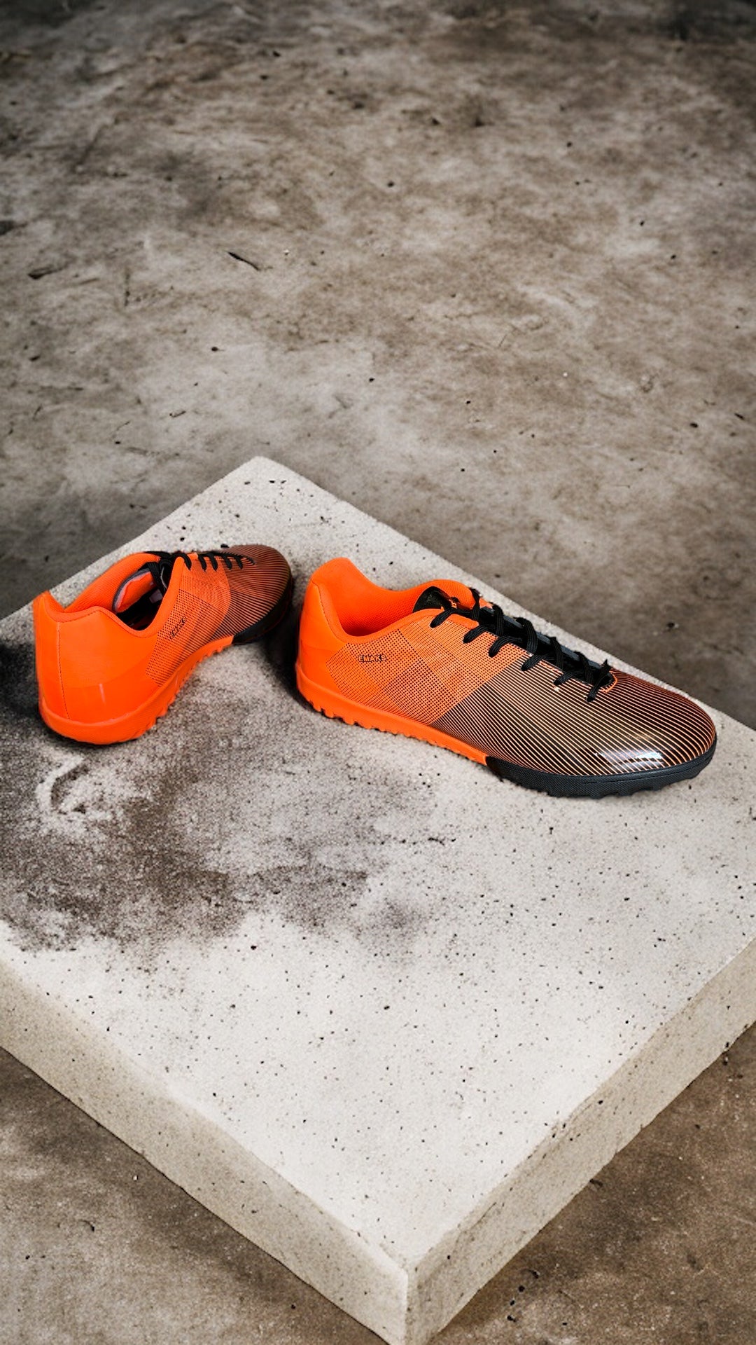 Obuwie męskie halowe w kolorze pomarańczowym z czarnymi paskami to doskonały wybór dla osób poszukujących stylowego, wygodnego i funkcjonalnego obuwia do sportów halowych.