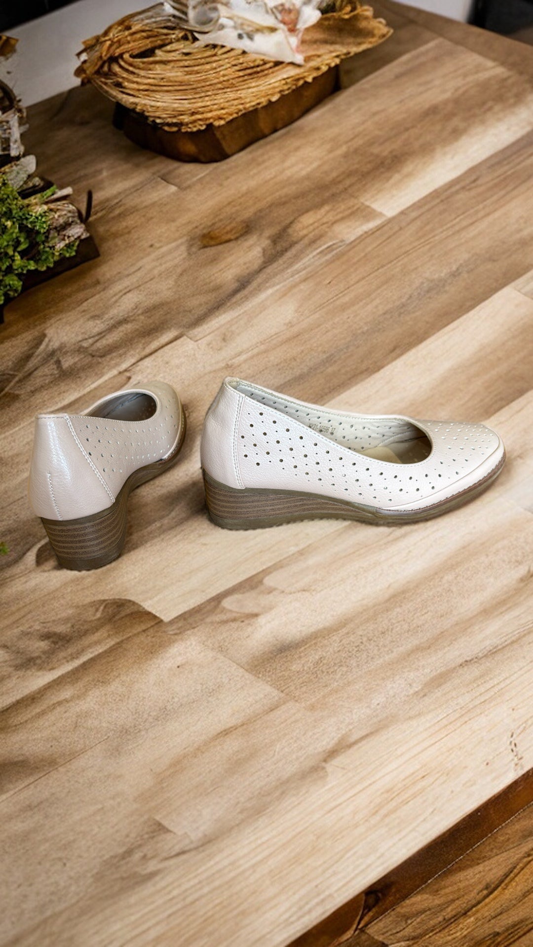 Te półbuty charakteryzują się ażurowym wzorem, który dodaje im lekkości i przewiewności, co jest szczególnie istotne w cieplejsze dni. Wykonane z wysokiej jakości materiałów, zapewniają wygodę i trwałość. Koturn dodaje kilku centymetrów wzrostu, jednocześnie zapewniając stabilność i komfort noszenia.