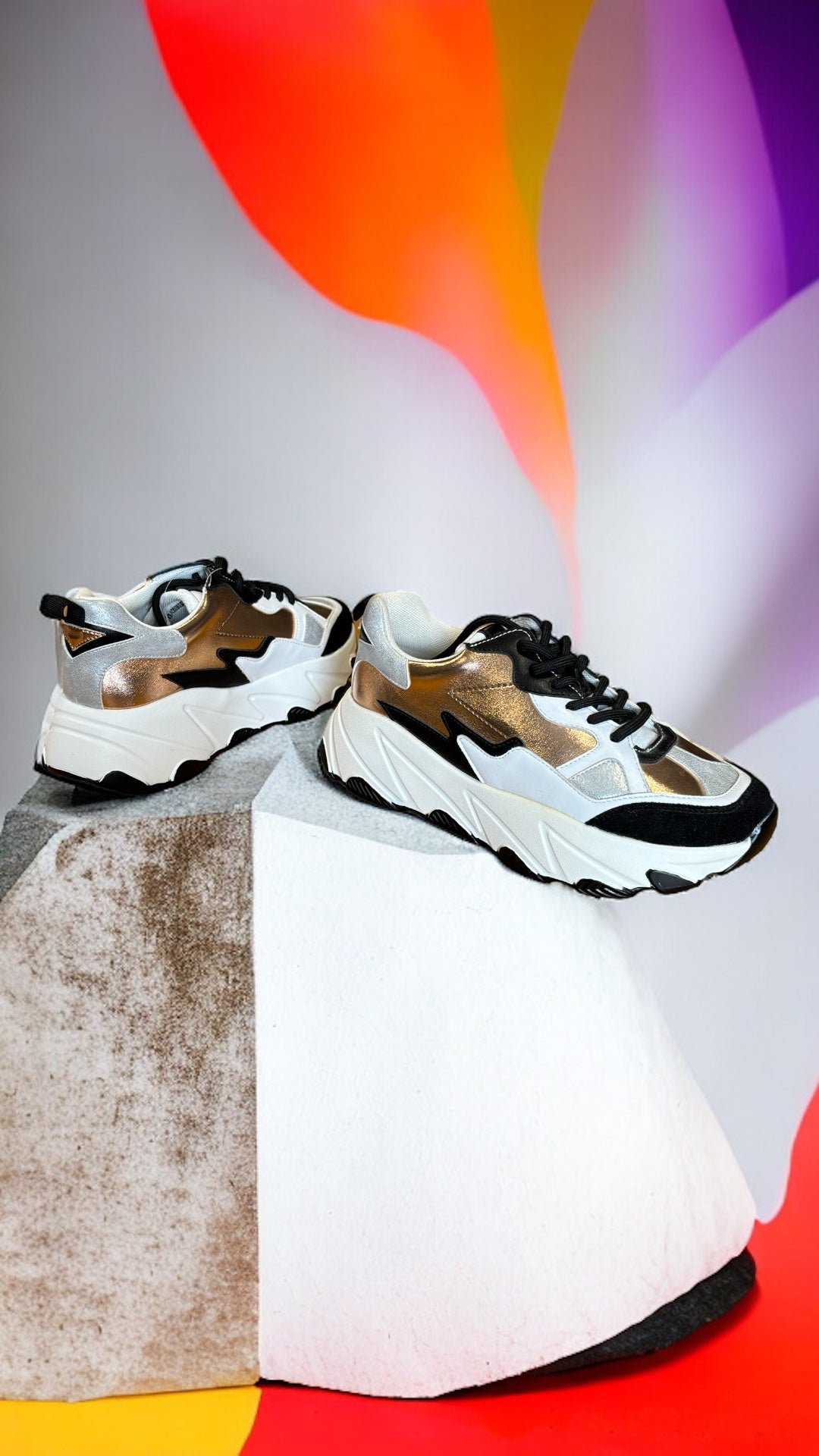 Te sportowe buty łączą w sobie nowoczesny design z praktycznością. Czarno-złota kolorystyka nadaje im elegancki, a zarazem dynamiczny wygląd, co sprawia, że świetnie komponują się zarówno z odzieżą sportową, jak i casualową. Wykonane z materiału skaj, obuwie charakteryzuje się wysoką odpornością na uszkodzenia oraz łatwością w utrzymaniu czystości.