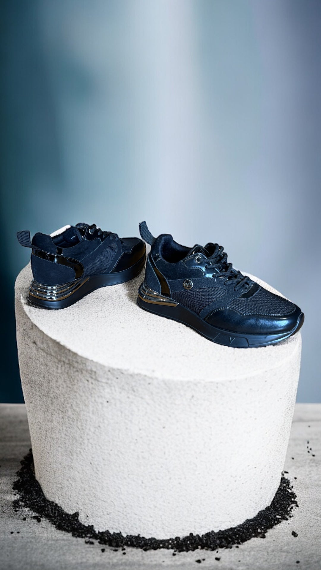 - Wstawki: Złote akcenty, które mogą być umieszczone na bokach, w okolicy sznurowania lub na podeszwie. Dodają one eleganckiego i modnego wyglądu, doskonale kontrastując z czernią butów.
